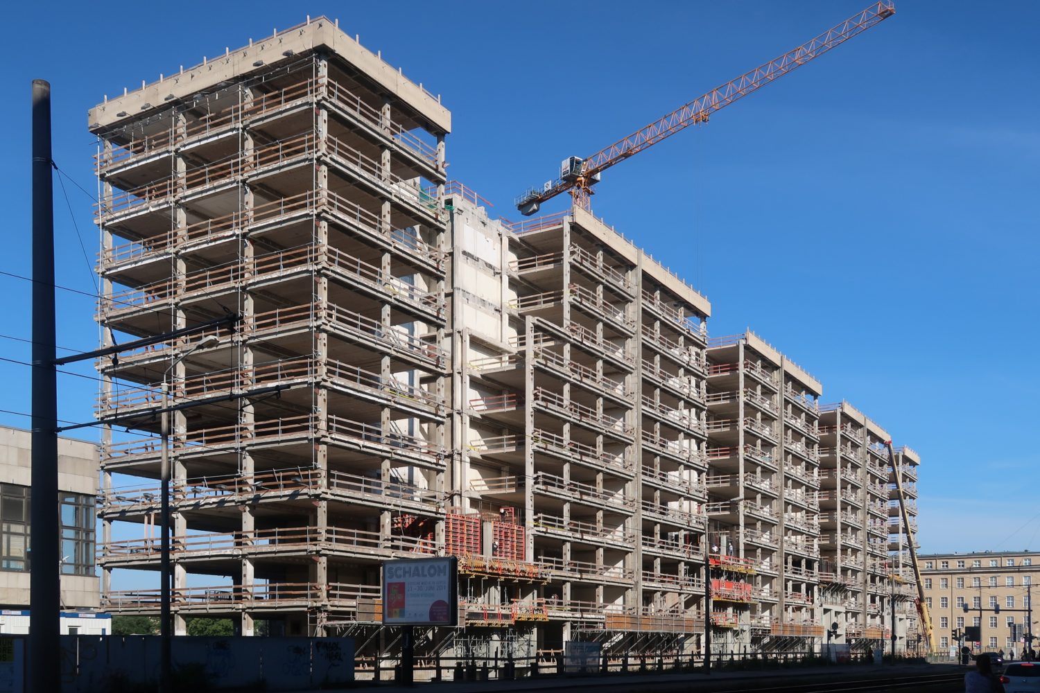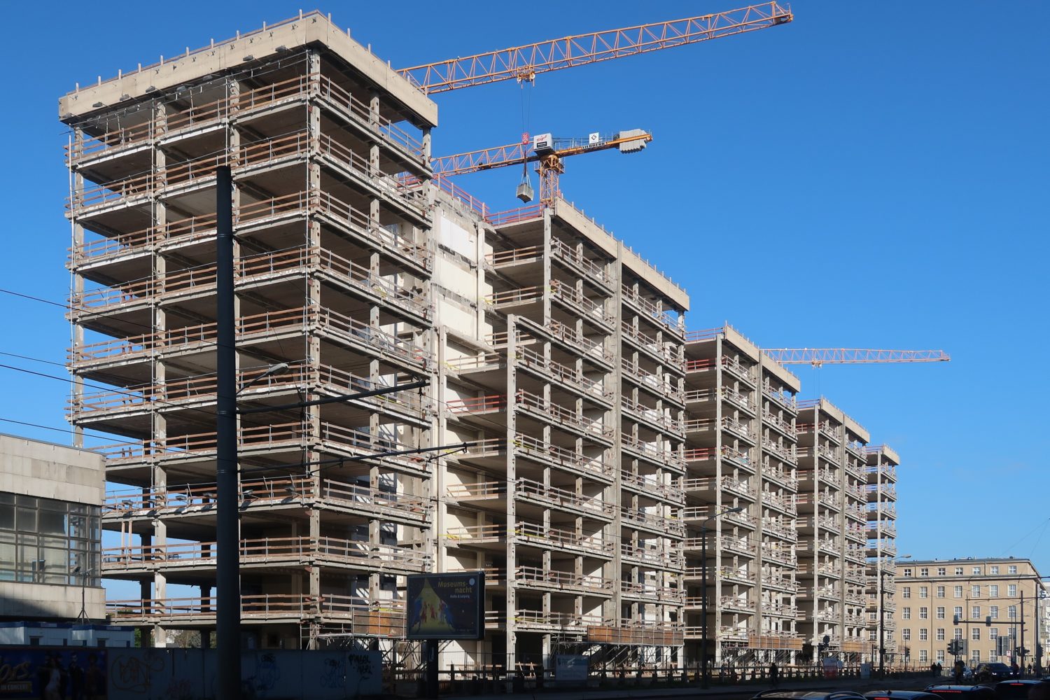 Der Bestandskomplex besteht aus vier nahezu baugleichen 10-Geschossern mit einem Stützen-Riegel-System der vereinigten Geschossbauweise der ehemaligen DDR. Die Deckenscheiben leiten horizontale Wind- und Aussteifungslasten auf jeweils 2 Aussteifungskerne ab.