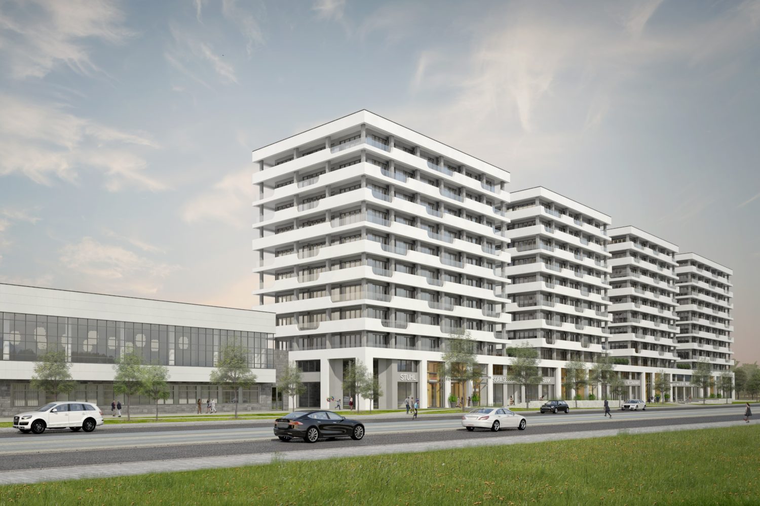 Durch die Umgestaltung des ehemaligen technischen Rathauses Leipzig verwandelt sich ein schlichter Hochhausblock in vier zukunftsweisende Türme mit Wohn- und Gewerbeeinheiten. Straßenseitig wird der Gebäudekomplex um eine Tiefgarage, hofseitig um einen eingeschossigen Parkhausanbau erweitert. Nebenan wird ein ehemaliges Mensagebäude zu einem multifunktionalen Veranstaltungsort umgebaut.