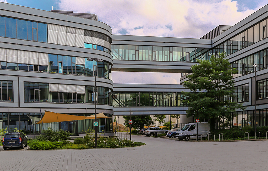 Es handelt sich um monolithische Stahlbetonbauten mit punktgestützten Flachdecken und schlanken Stützen in Stahlverbundbauweise. Das Hauptgebäude besitzt in den Obergeschossen ein mit einem Glasdach überspanntes Atrium.