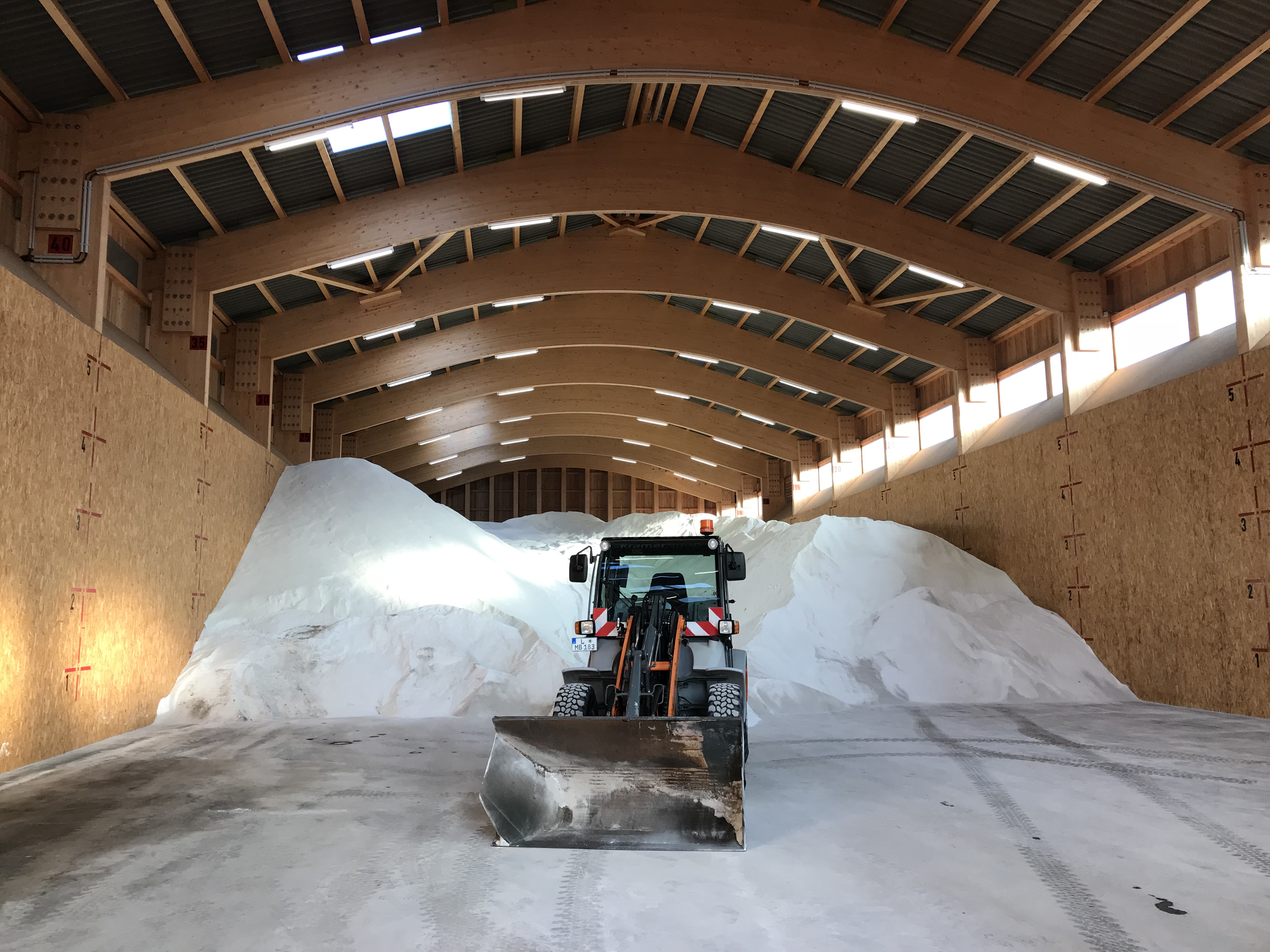 Alles an einem Standort: Streusalz, Soleanlagen und Uloporlager. In einer neuen Halle mit einer Grundfläche von 60,0 m x 18,20 m lagern 5.500 m³ Streusalz für eine Wintersaison.